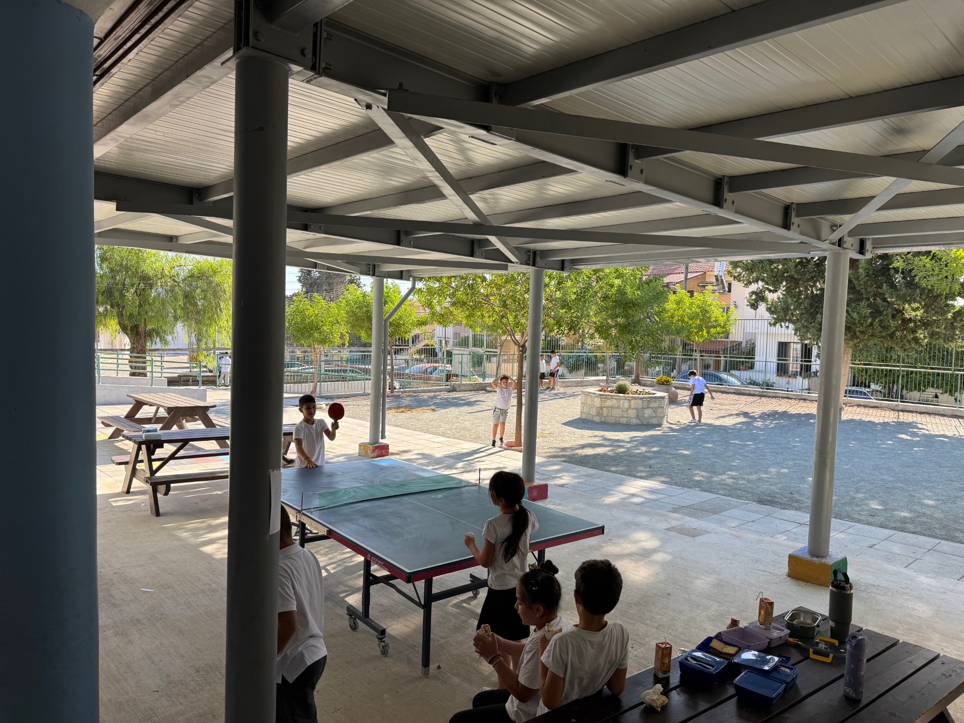 Κατά τη διάρκεια του διαλείμματος, οι μαθητές απολαμβάνουν δημιουργικές στιγμές μέσα από επιτραπέζια εκπαιδευτικά παιχνίδια, πινγκ πονγκ και άλλες δραστηριότητες που ενισχύουν τη συνεργασία, τη σκέψη και τη χαρά της συμμετοχής. Η εκπαιδευτική μουσική που πλαισιώνει τον χώρο δημιουργεί μια ζεστή και εμπνευσμένη ατμόσφαιρα. Παράλληλα, οι εκπαιδευτικοί γίνονται ένα με τα παιδιά, συμμετέχοντας ενεργά και καθοδηγώντας τα μέσα από ένα οργανωμένο εκπαιδευτικό πρόγραμμα που, με εργαλείο τη διασκέδαση και το παιχνίδι, προβάλλει τις αξίες της αγάπης, της οικογένειας και του σεβασμού. Έτσι, το διάλειμμα μετατρέπεται σε έναν πολύτιμο χρόνο βιωματικής μάθησης και ενδυνάμωσης των ανθρωπίνων σχέσεων.